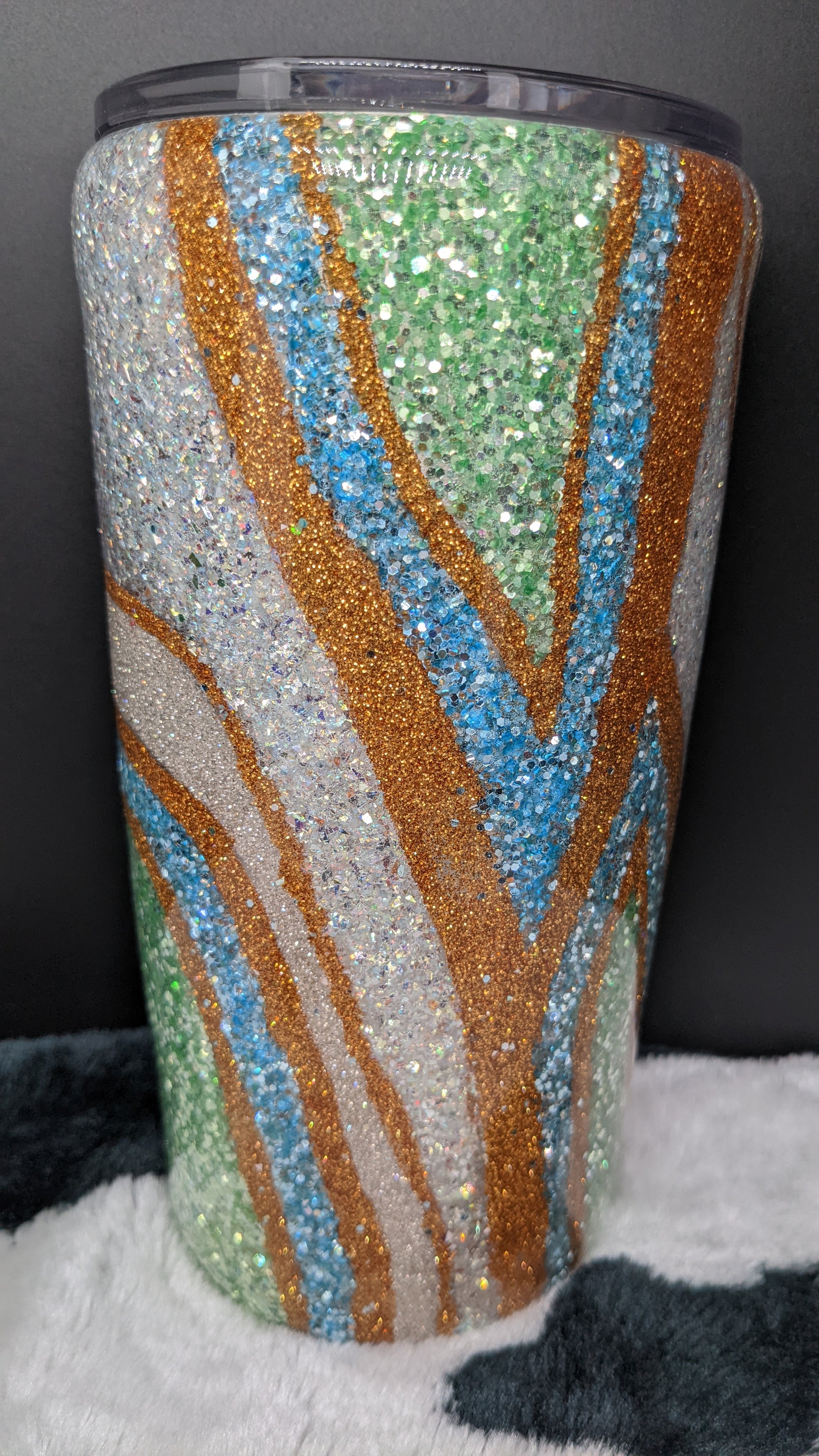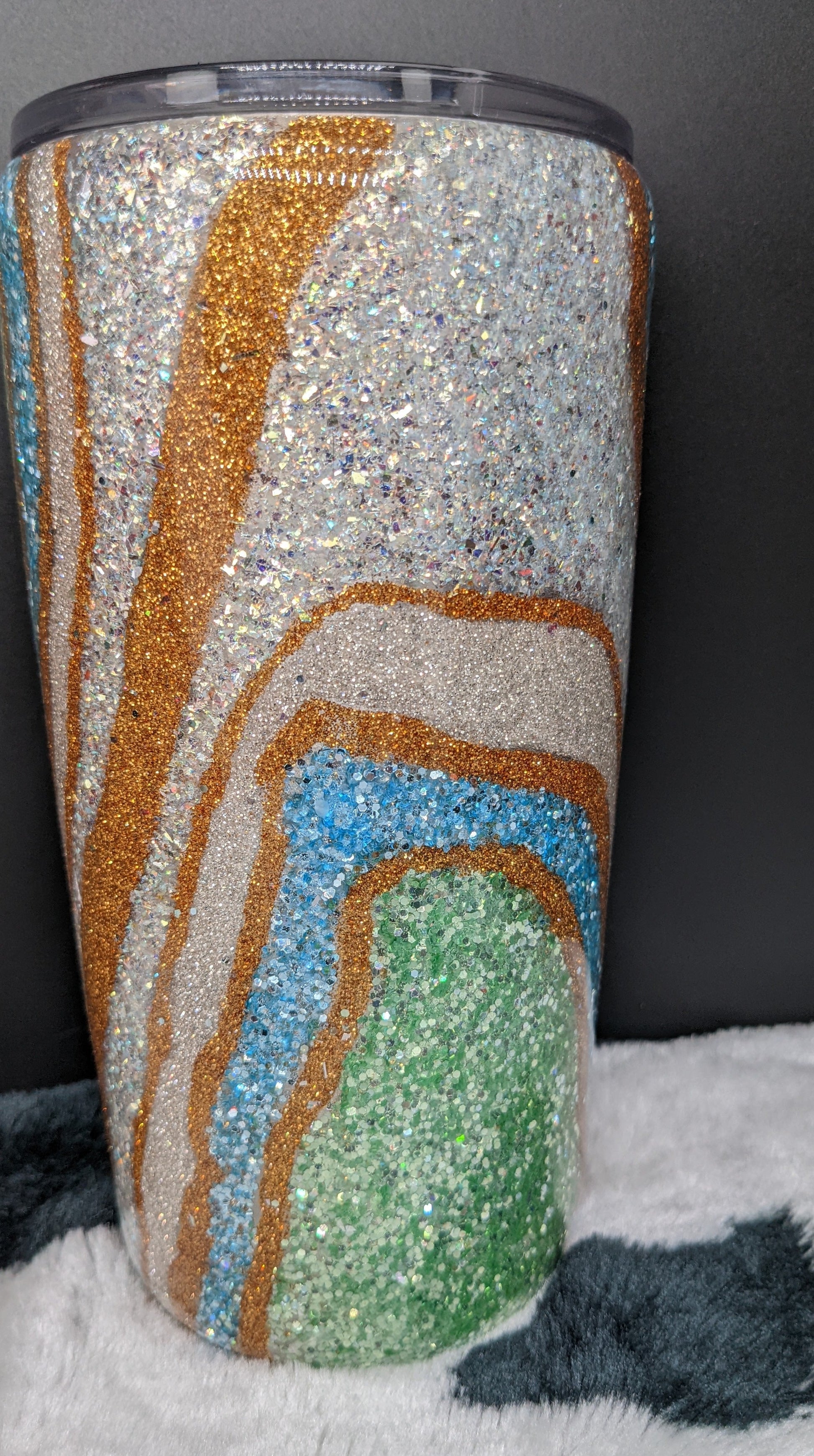 20 oz geode stainless steel double insulted epoxy tumbler. Will keep drinks hot or cold for extended amounts of time.