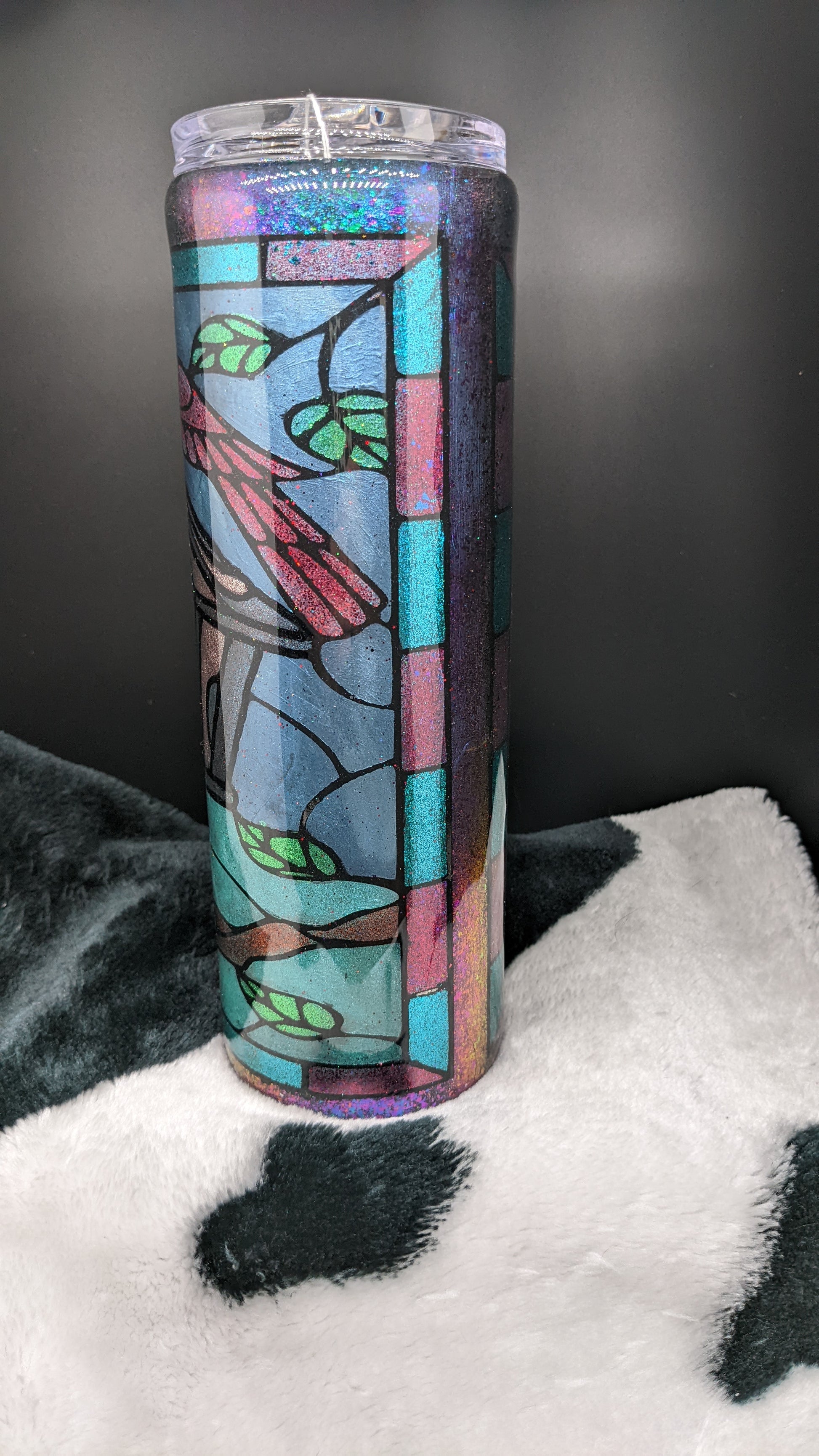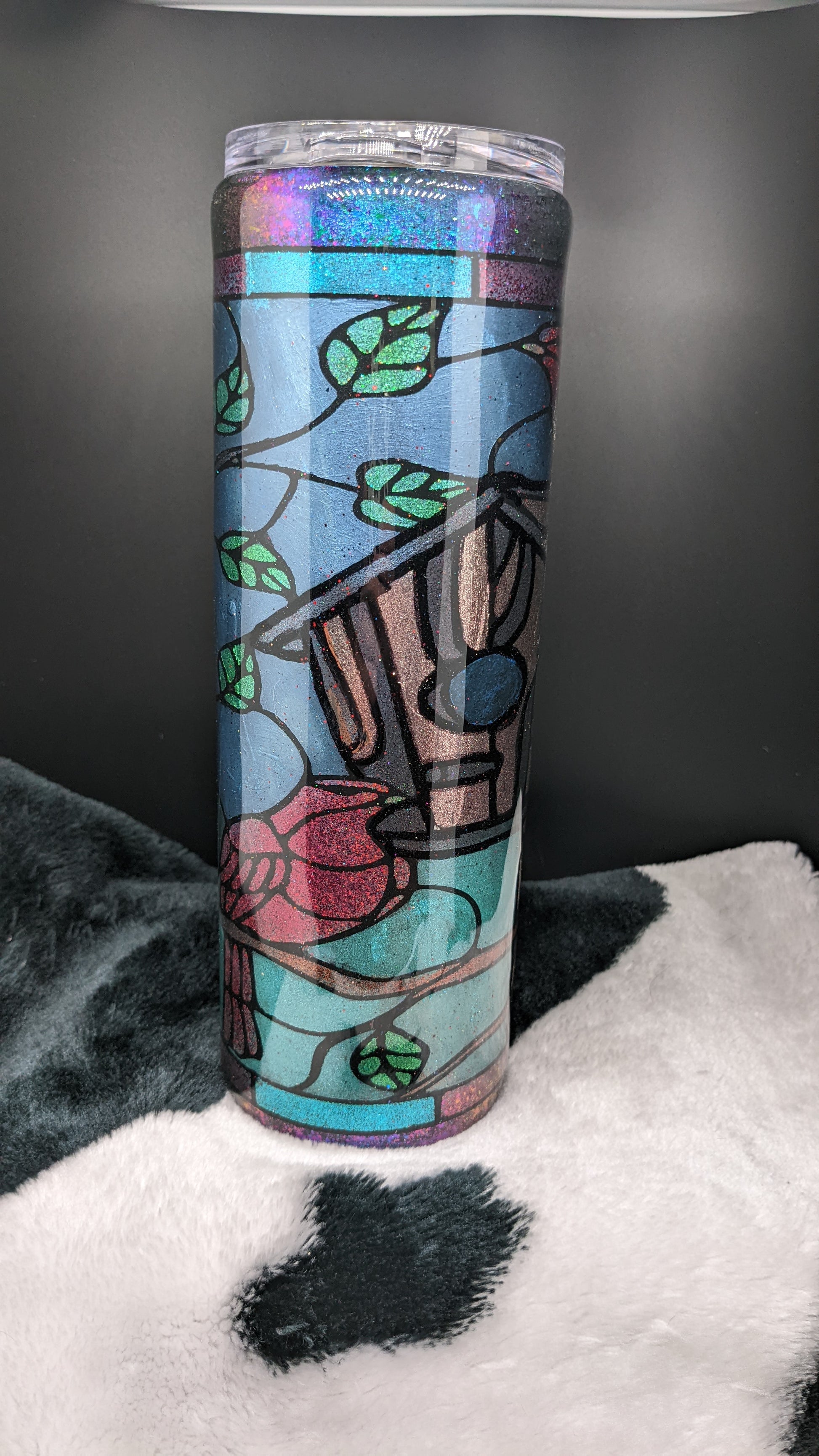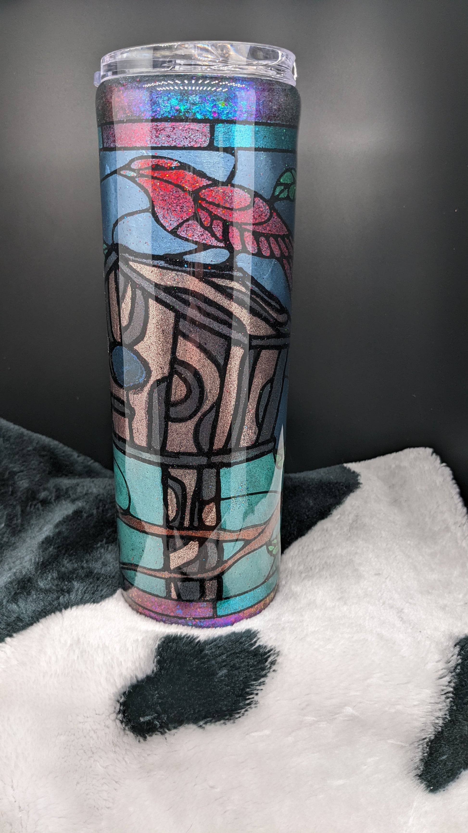 30 oz skinny bird house with birds epoxy tumbler. Will keep drinks hot or cold for an extended time.