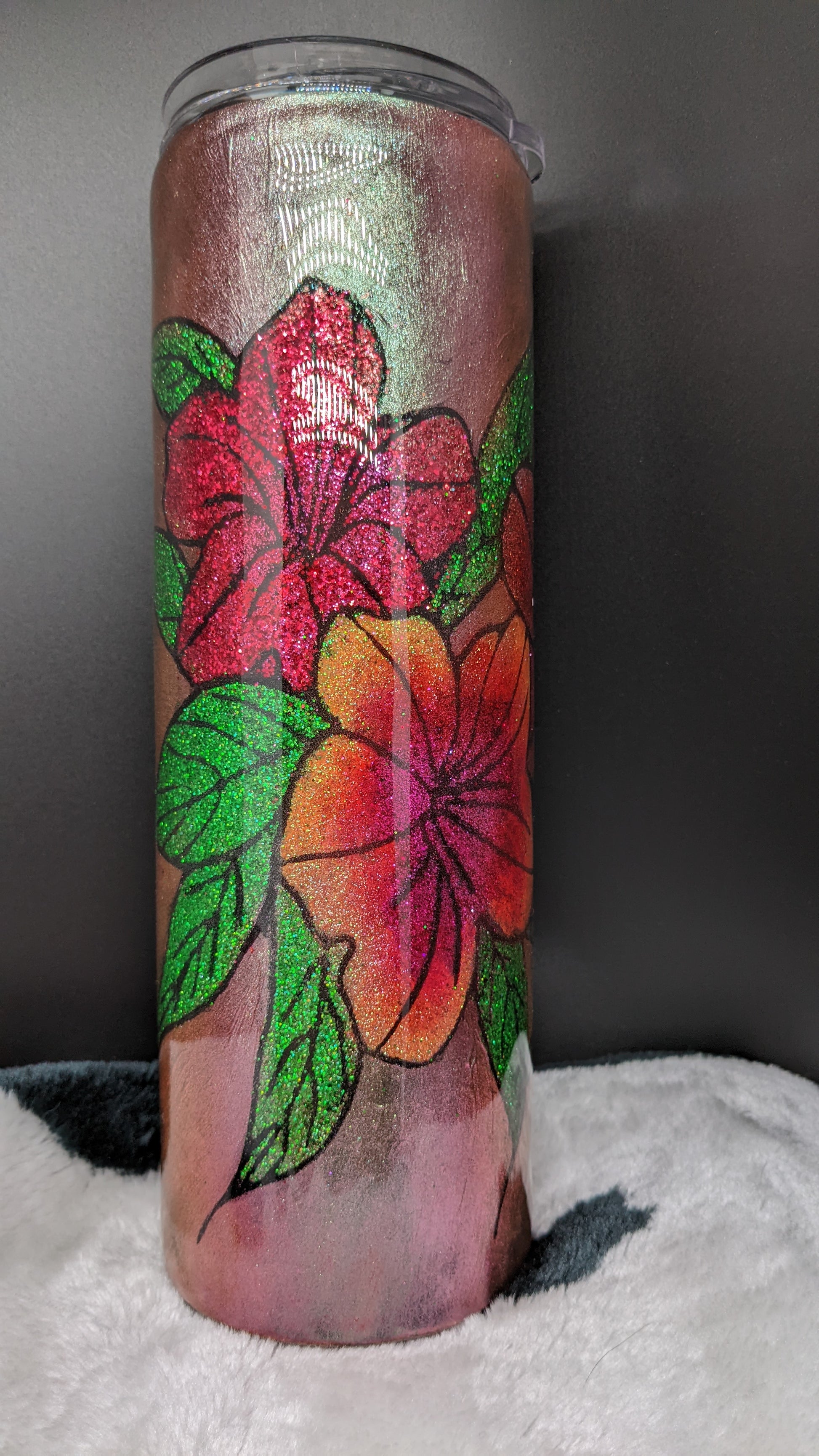 30 oz flower stainless steel double insulated epoxy tumbler. Will keep drinks hot or cold for an extended amount of time.