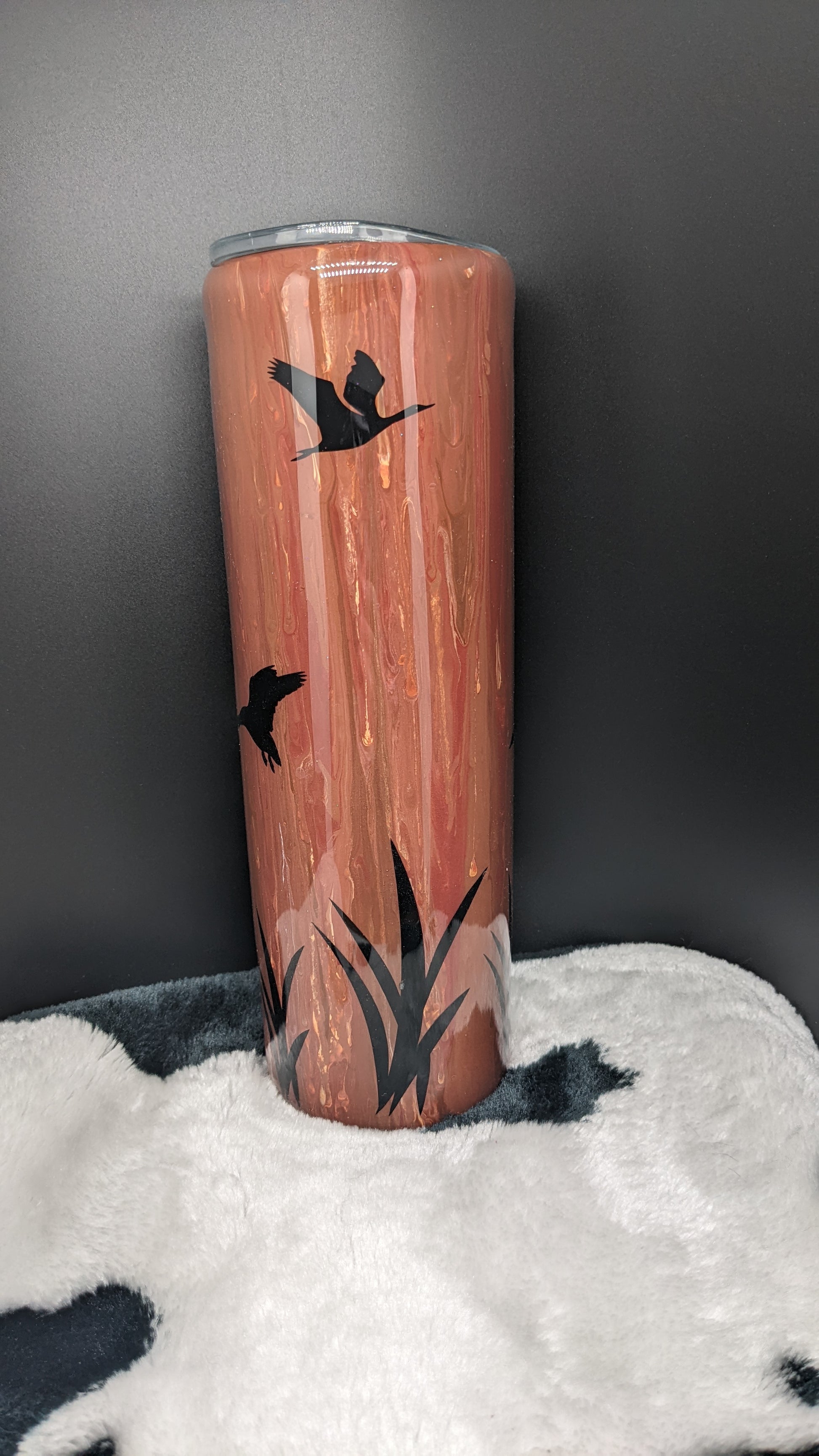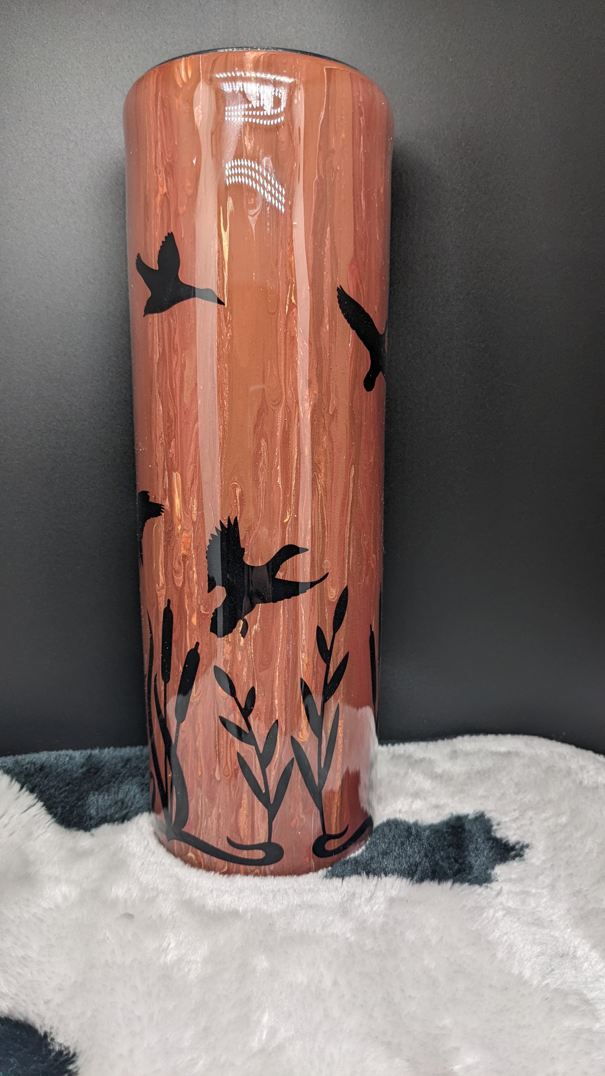 30 oz dirty poor hunting duck tumbler. Stainless steel double insulated epoxy tumbler. Will keep drink hot or cold for extended time.