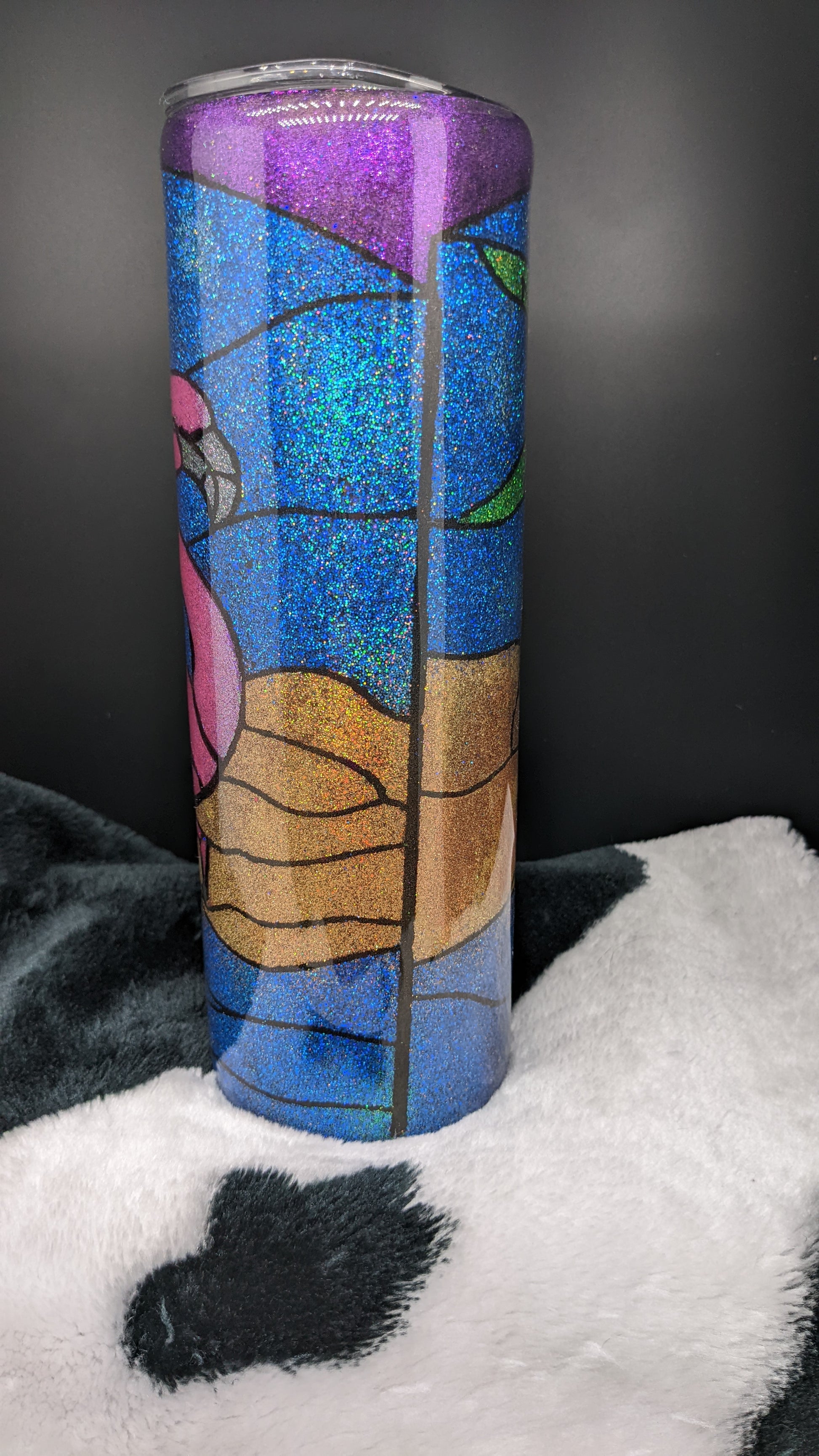 30 oz skinny flamingo epoxy tumbler. Will keep drinks hot or cold for an extended time.