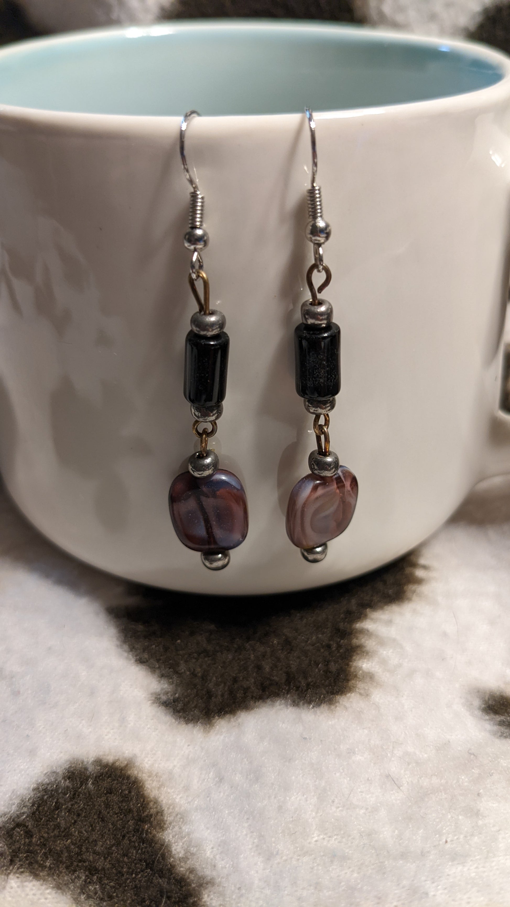 handmade Black and pink/purple dangling earrings